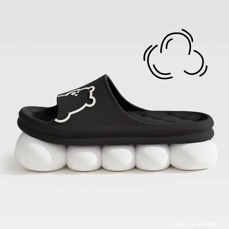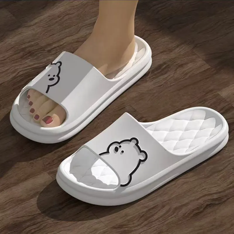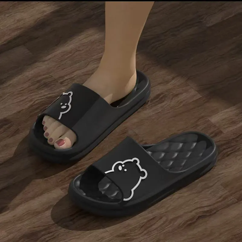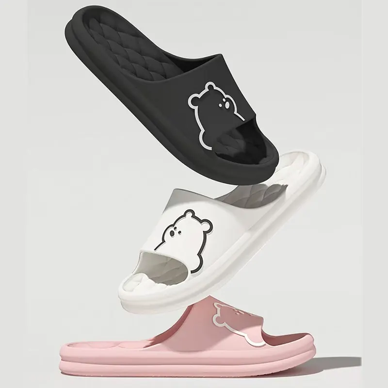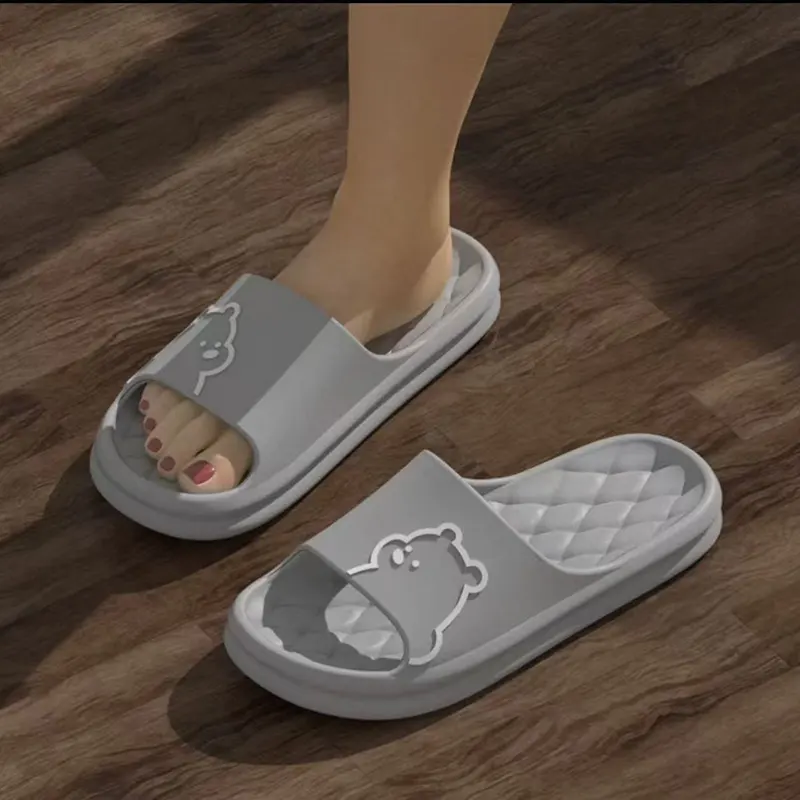 3. Sandal Bear Cute nggabungake desain beruang sing lucu, nggawe dheweke nyenengake lan nyenengake, nggabungake kepraktisan lan estetika. Gaya sakabèhé prasaja lan elegan, gampang adaptasi karo macem-macem skenario kayata omah, wisma, lan liburan sing entheng.